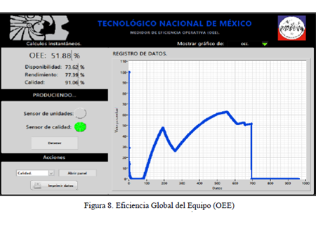 El monitorear en tiempo real estos indicadores, permite identificar desperdicios y aprovechar las capacidades empresariales. En este trabajo se propone un algoritmo que considera las principales condiciones que se pueden presentar al medir los indicadores de Disponibilidad, Rendimiento y Calidad, los cuales son necesarios para calcular el OEE. Aquí se presentan tableros en donde se les puede dar seguimiento en tiempo-real a cada uno de los indicadores para tomar las acciones correctivas necesarias.